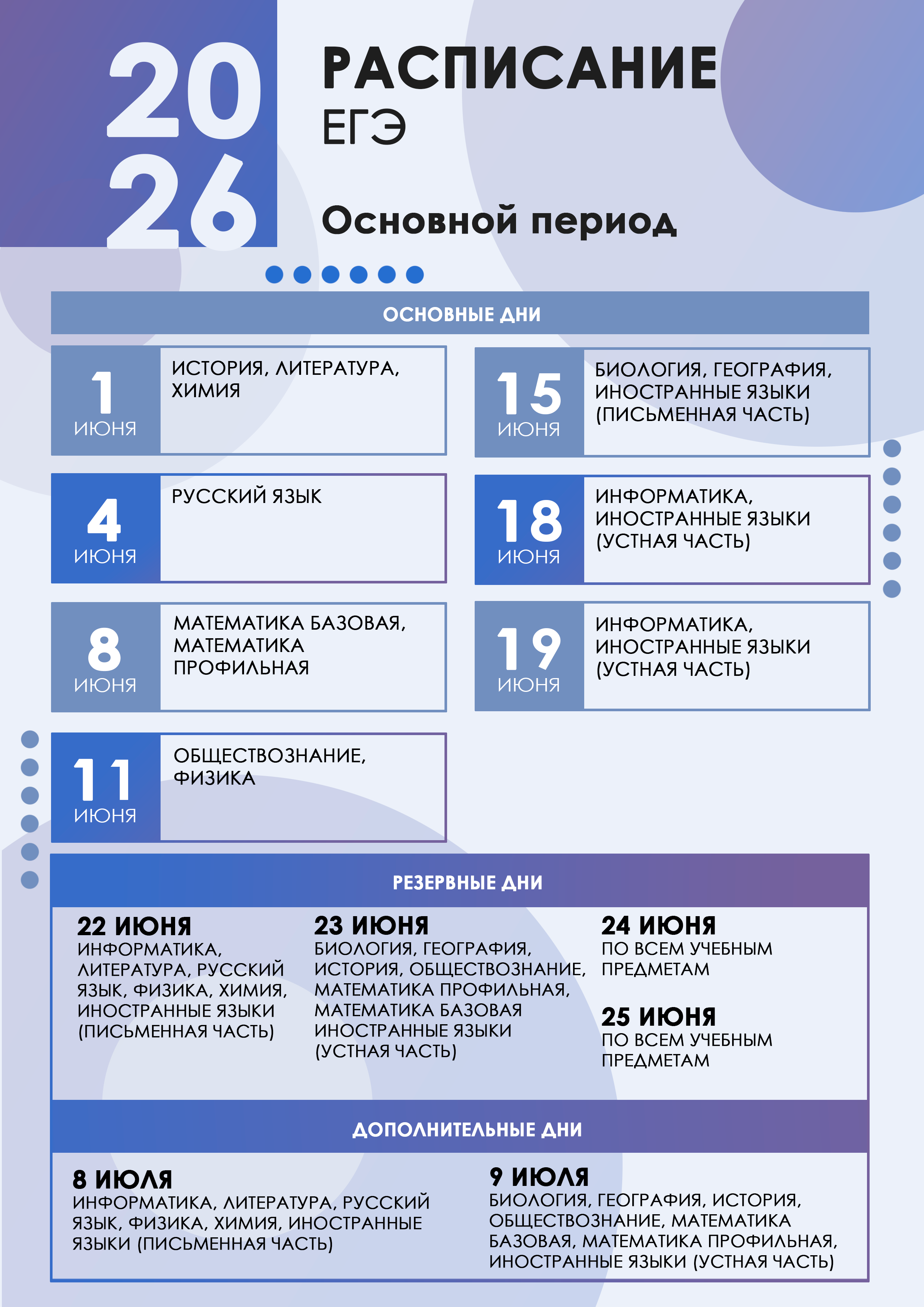 - Об утверждении единого расписания и продолжительности проведения государственного выпускного экзамена по образовательным программам основного общего и среднего общего образования по каждому учебному предмету, требований к использованию средства обучения и воспитания при его проведении в 2026 году