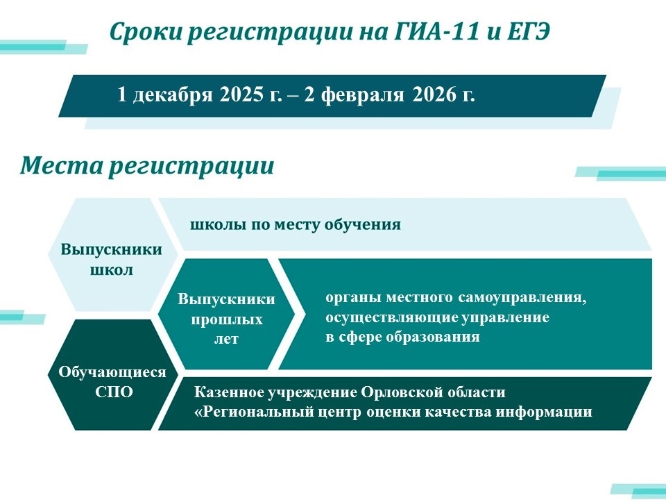 - Об определении мест расположения пунктов проведения единого государственного экзамена и государственного выпускного экзамена на территории Орловской области в 2026 году