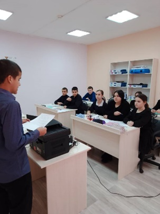 С целью формирования устойчивого интереса к деятельности по конструированию, программированию, популяризация инженерных и технических специальностей, учащаяся 10 класса Кочоян Карина познакомила учащихся 5 класса с основными функциями робота, показала, как составлять элементарные программы для его работы. В ходе работы ребята под её руководством собрали свих роботов и запустили их.