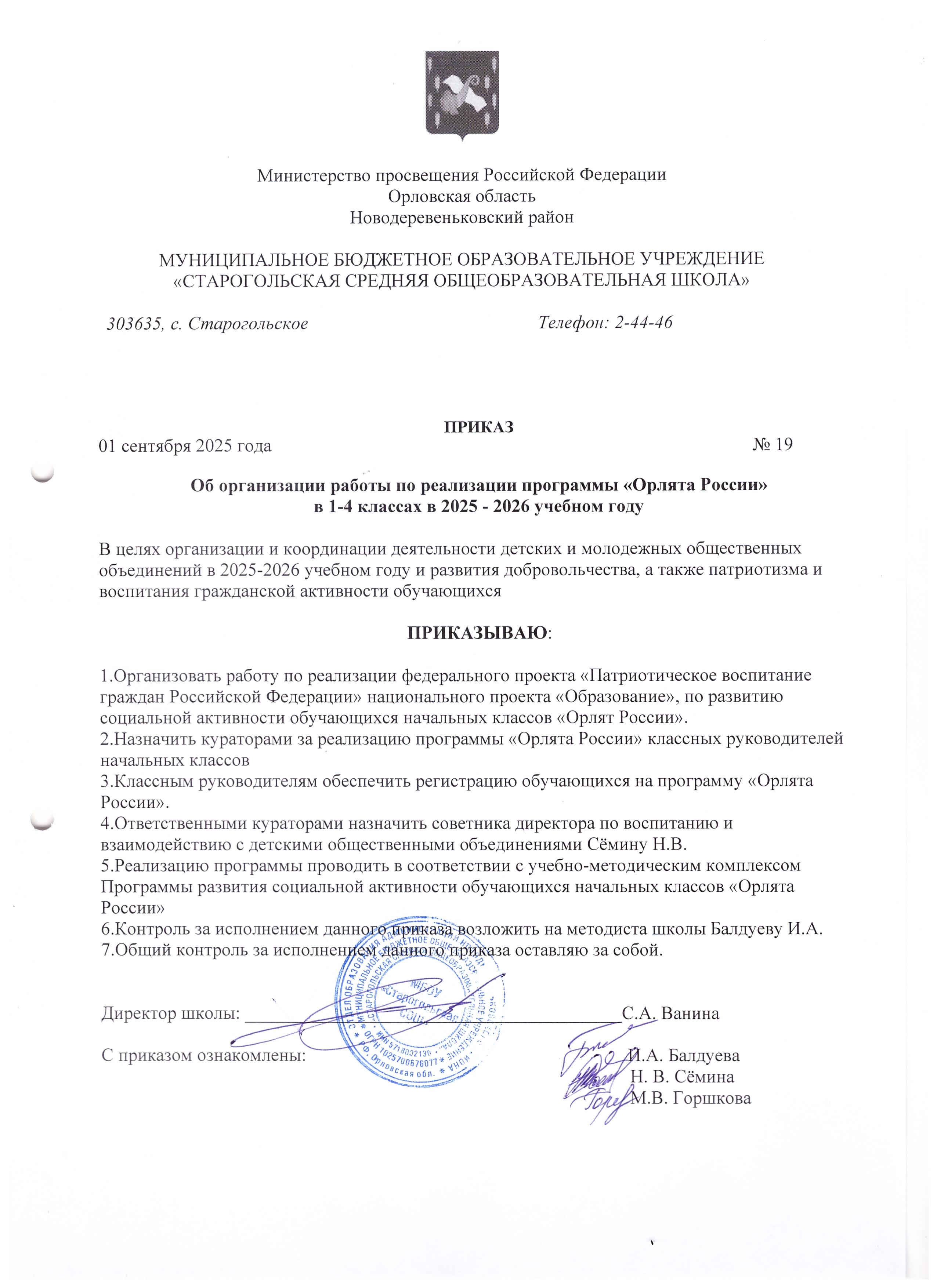 приказ об организации работы по реализации проммы Орлята Росии на 25-26 год