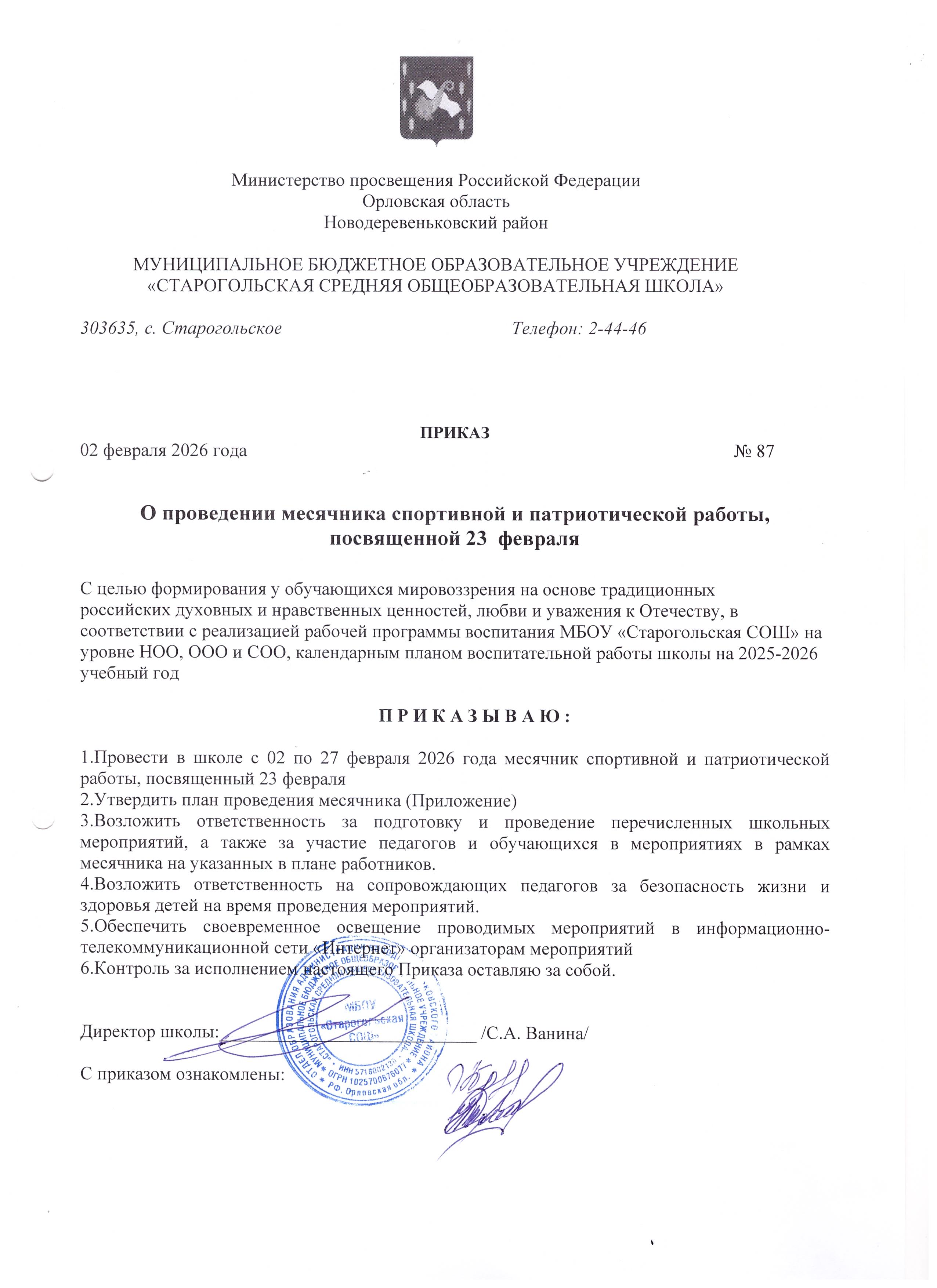 приказ по проведению месячника спортивной и патриотической работы к 23 фефраля