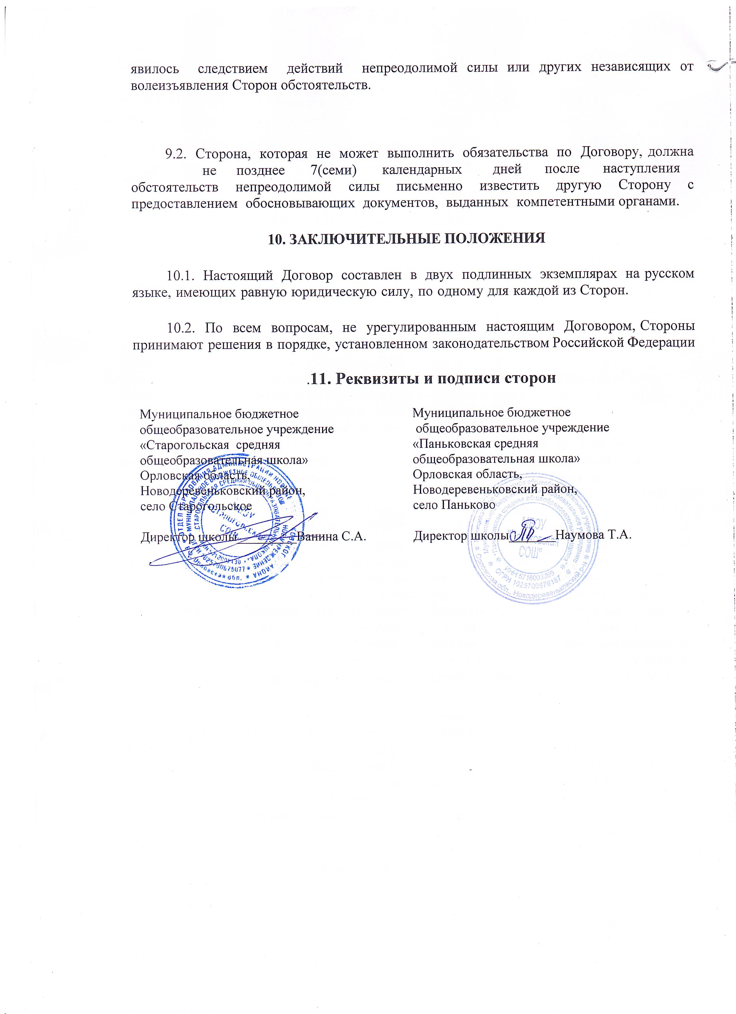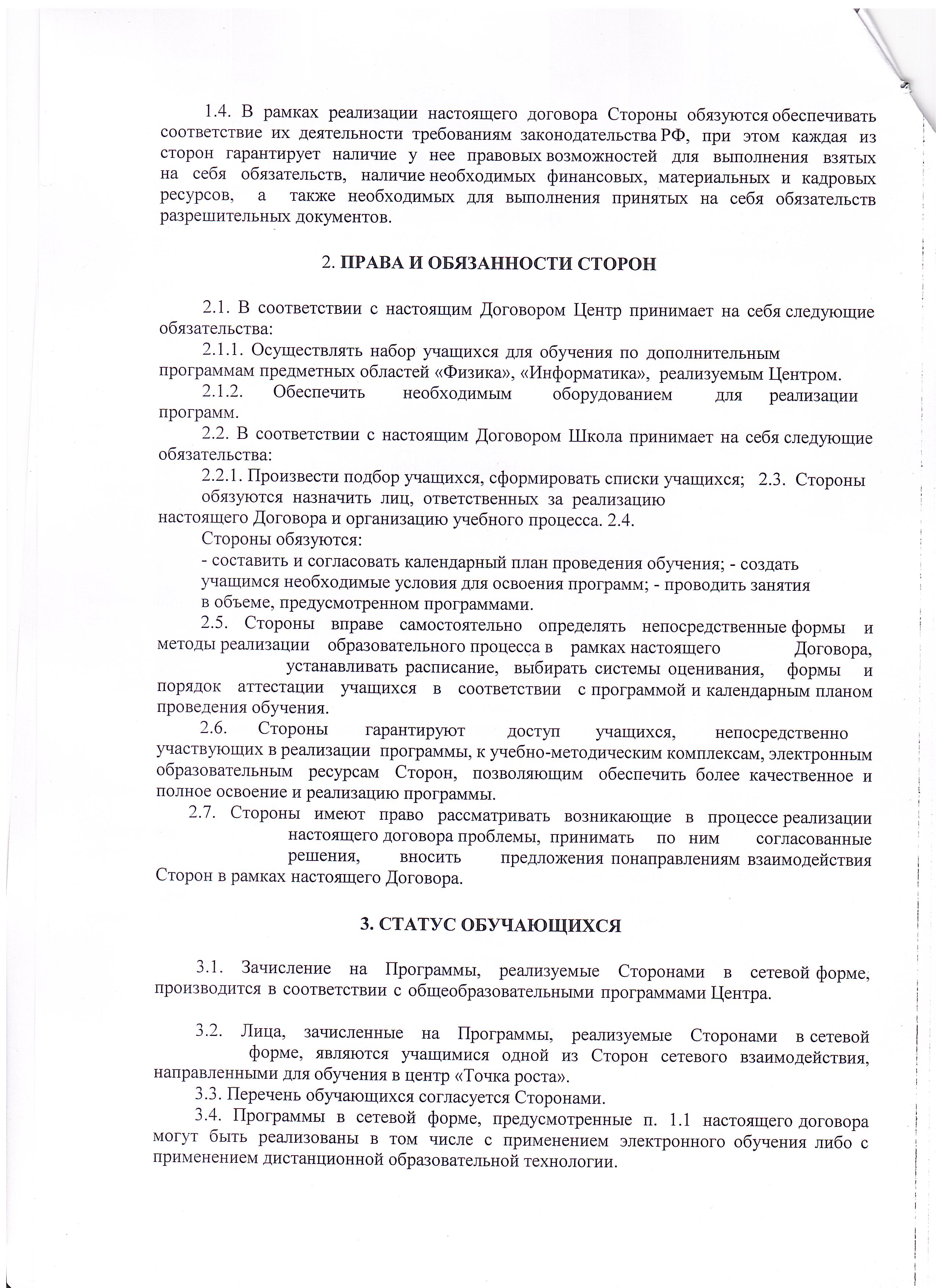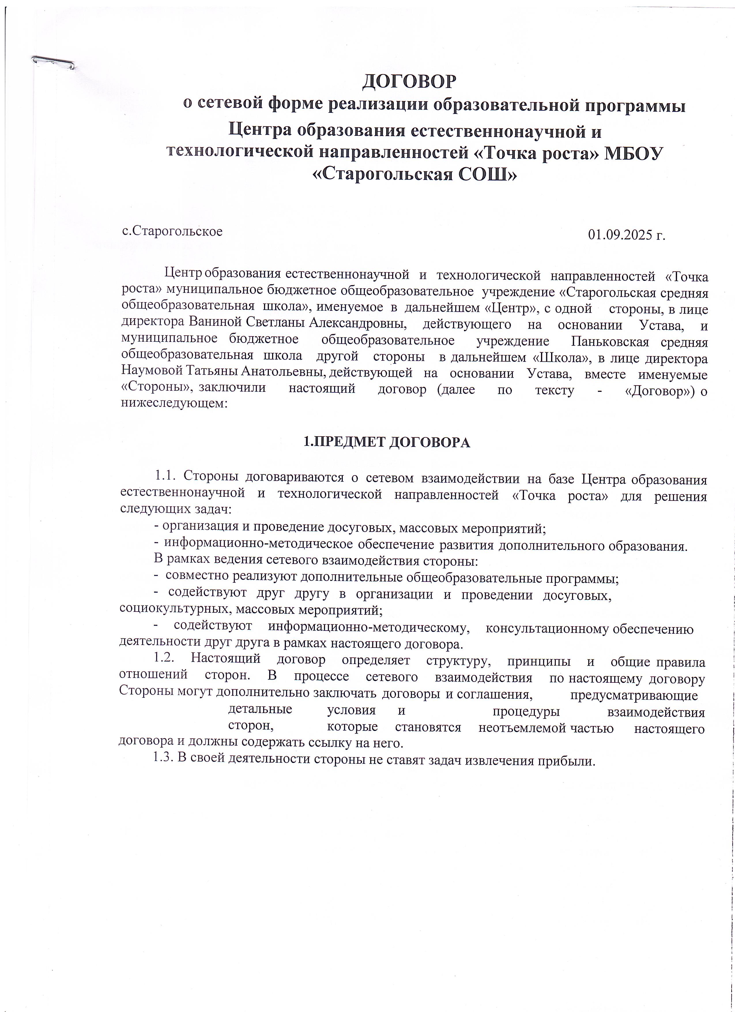 ДОГОВОР о сетевой форме реализации образовательной программы Центра образования естественнонаучной и технологической направленностей «Точка роста» МБОУ «Старогольская СОШ»
