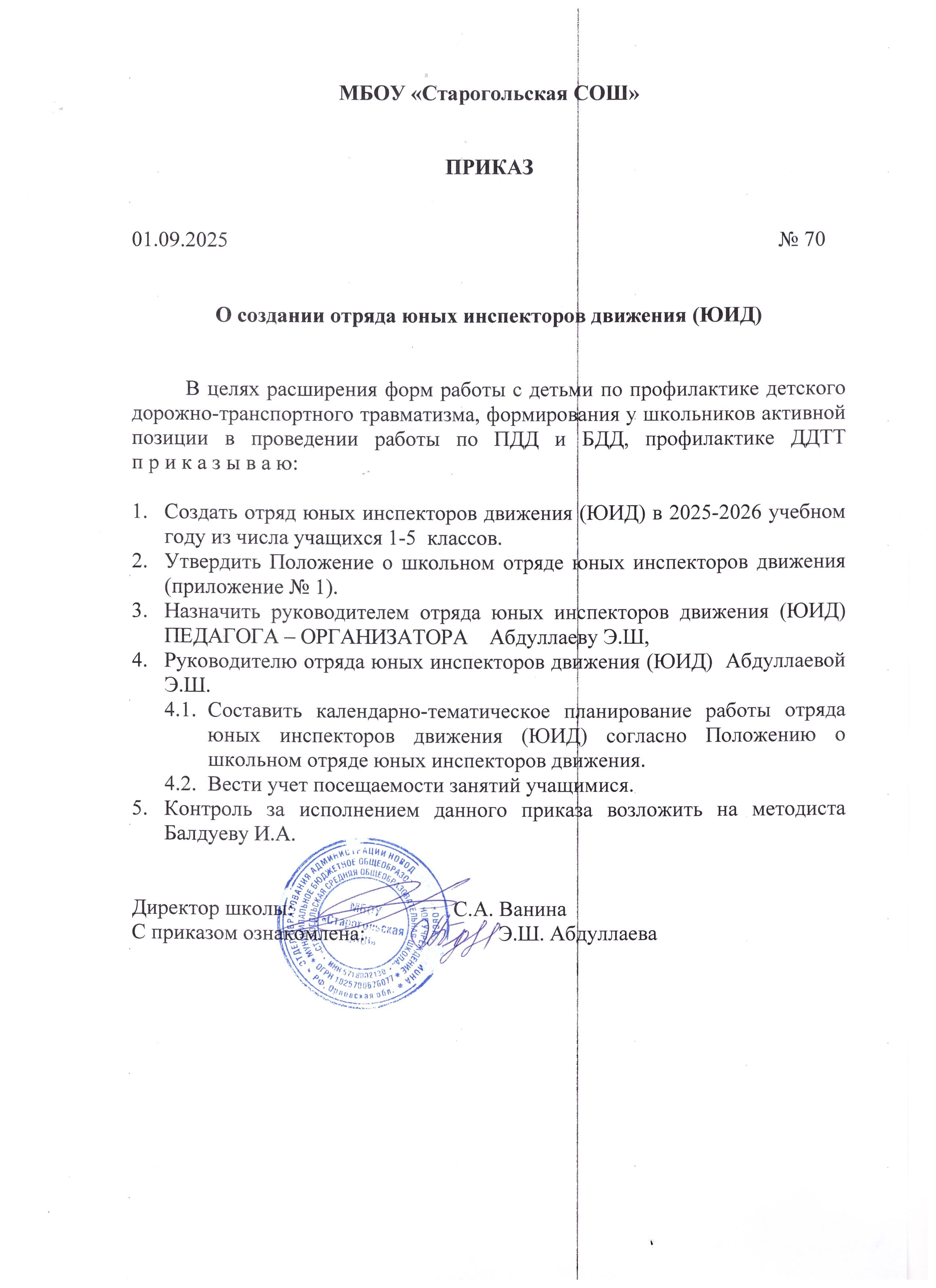Приказ о создании школьного отряда юных инспекторов движения (скачать) (посмотреть)